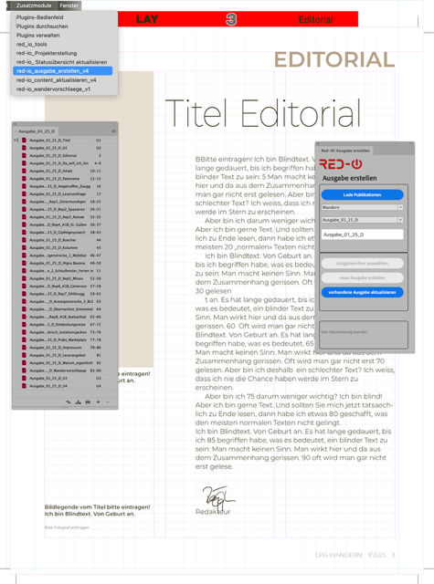 Ja, dann wird RED-IO um eine grafische Ausgabenplanung erweitert, die den gesamten Planungsprozess vereinfacht. Redaktionen legen die gewünschte Seitenanzahl fest und erhalten im Editor eine visuelle Übersicht. Jede Seite kann flexibel mit Rubriken, Artikeln oder Anzeigen belegt und bei Bedarf verschoben werden. Mit einem Klick wird dann eine komplette Ausgabe im Editor automatisch erstellt. Besonders praktisch ist die Möglichkeit, wiederkehrende Vorlagen zu hinterlegen, so dass die Redakteure nicht mehr alle Artikel neu bestimmen müssen. Ist die Editor-Ausgabe dann erstellt und mit Texten und Bildern gefüllt, kann auch gleich, oder auch schon vorher die InDesign-Ausgabe erstellt werden. Moderne Rechner erledigen diesen Prozess in etwa 20 Sekunden, was den Produktionsprozess des Layouters erheblich beschleunigt.